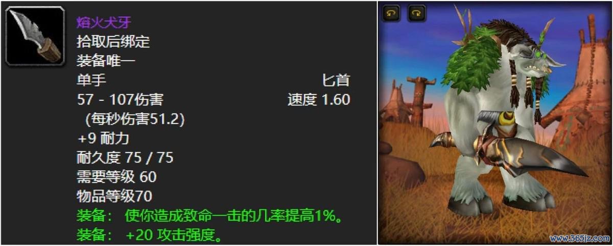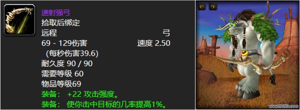 作为熔火之心常青藤武器速射长弓的话,必须是在玩家中热度很高的,因为不夸张的说,像战士或者盗贼这种职业拿了他可以说是版本毕业的,根本卸不下来,毕竟命中和常驻攻强都是非常香的属性,堪称完美绿字面板!