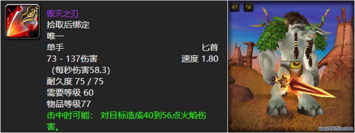 如果你问喵叔我魔兽世界最帅气的匕首是哪一款的话,那么喵叔肯定是会义无反顾的回答“毁灭之刃”,熔岩的火热、清晰的粒子特效缠绕,都在无时无刻诠释他的高贵与典雅,不过喵叔觉得这东西掉率有点低啊,我怀旧服也就见过几次而已!